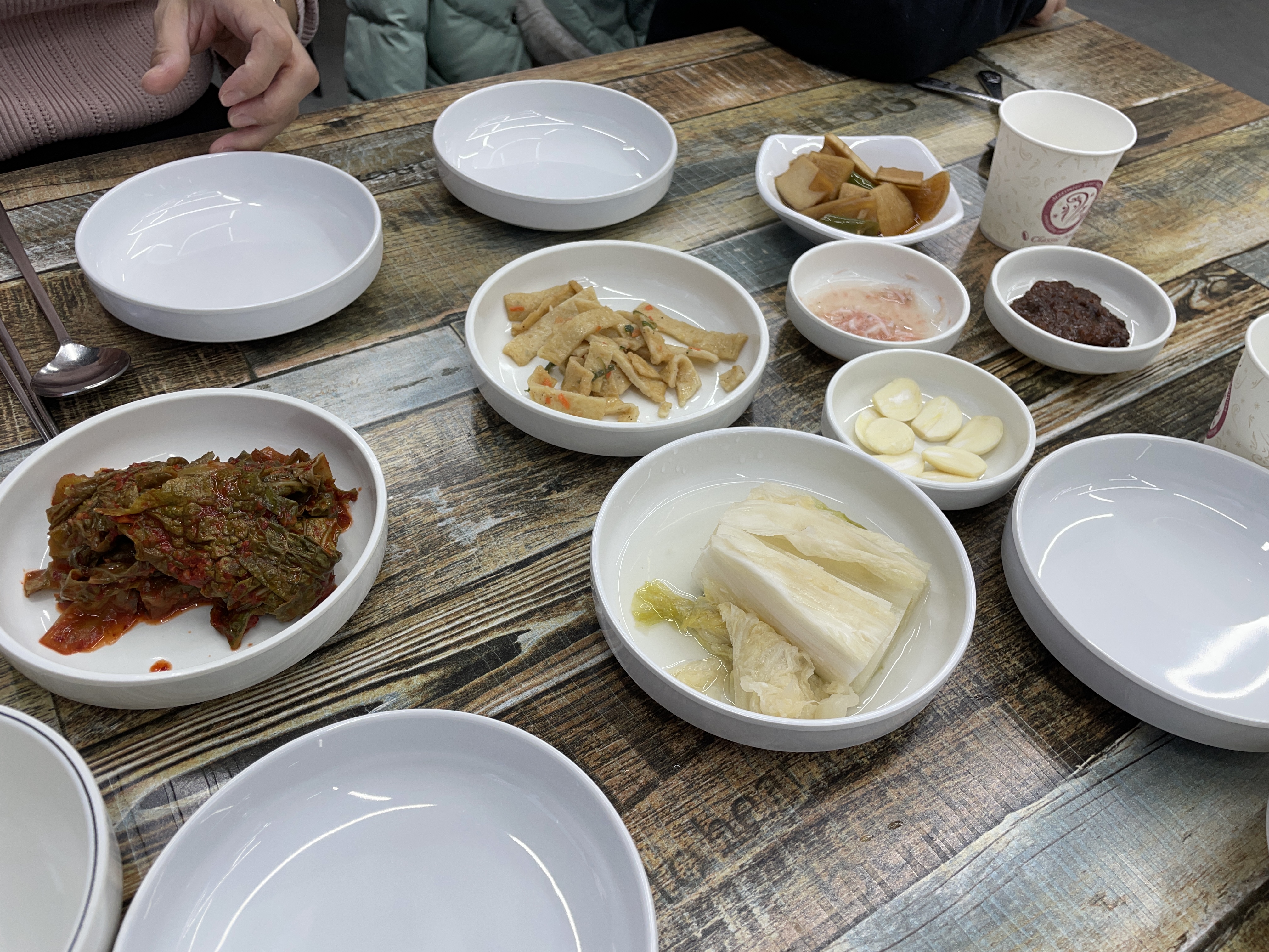 음식을 주문하니 나온 밑반찬. 김치가 갓김치?였던 것으로 기억. 폭삭 익은 느낌? 전라도에 시골할머니가 사시는데 시골할머니댁 김치 느낌이 좀 났다. 푹 익은 그런 느낌.