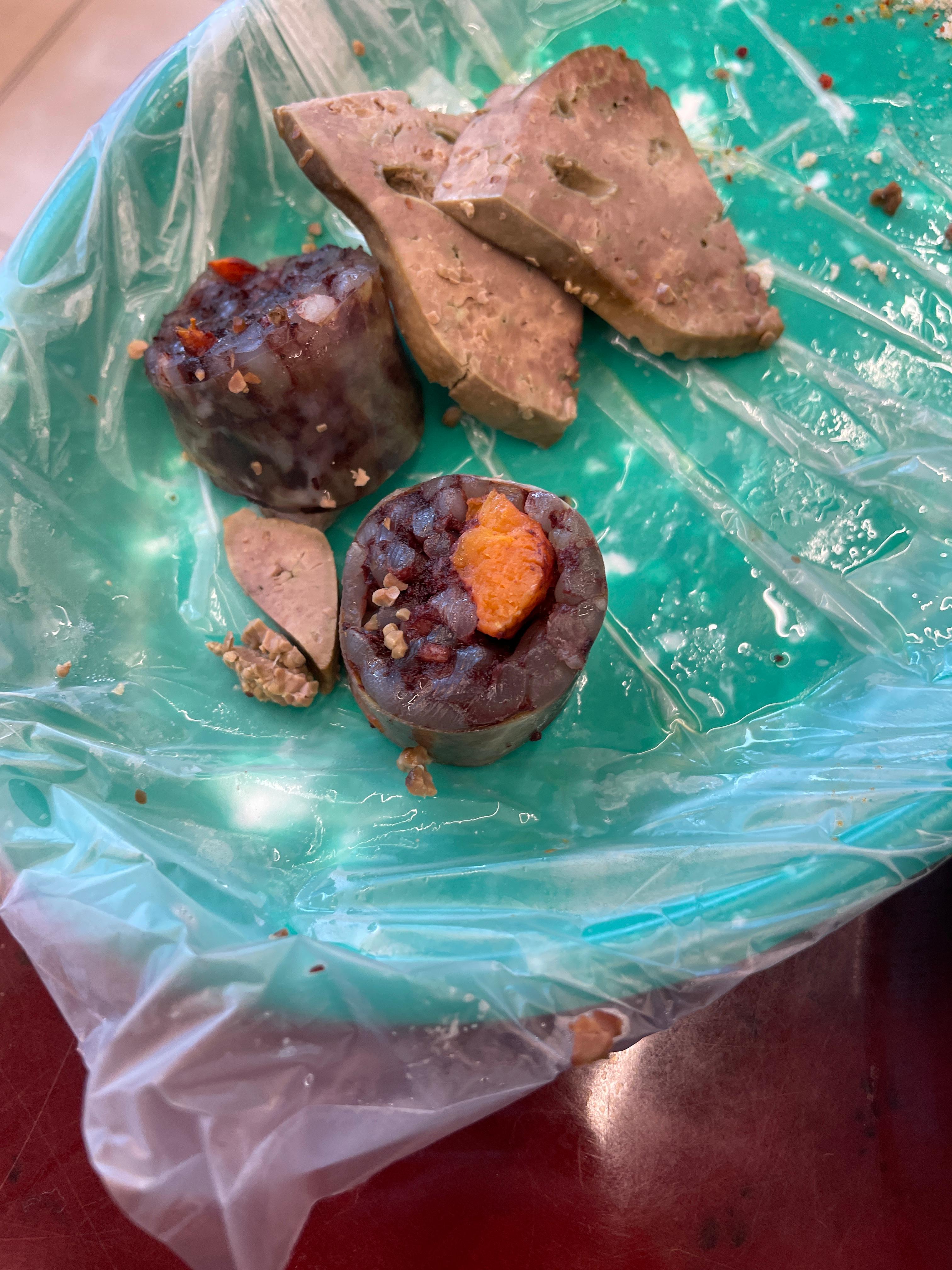 순대 with 내장. 순대에 당근이 박혀있는데.. 미친사이즈로 박혀있다.. 저런게 2개 있어서 존나 맘상했다.