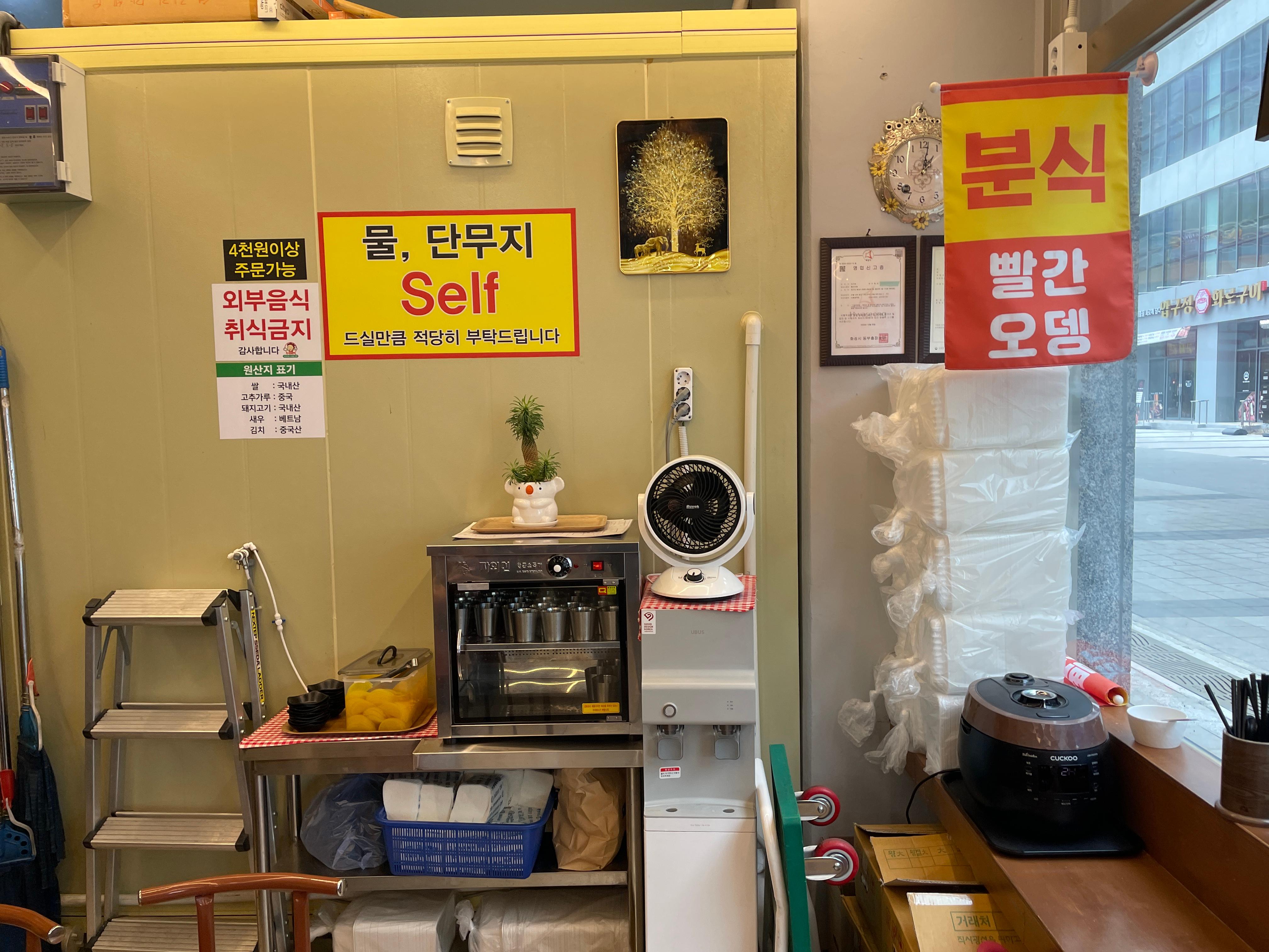 단무지와 물은 셀프다.