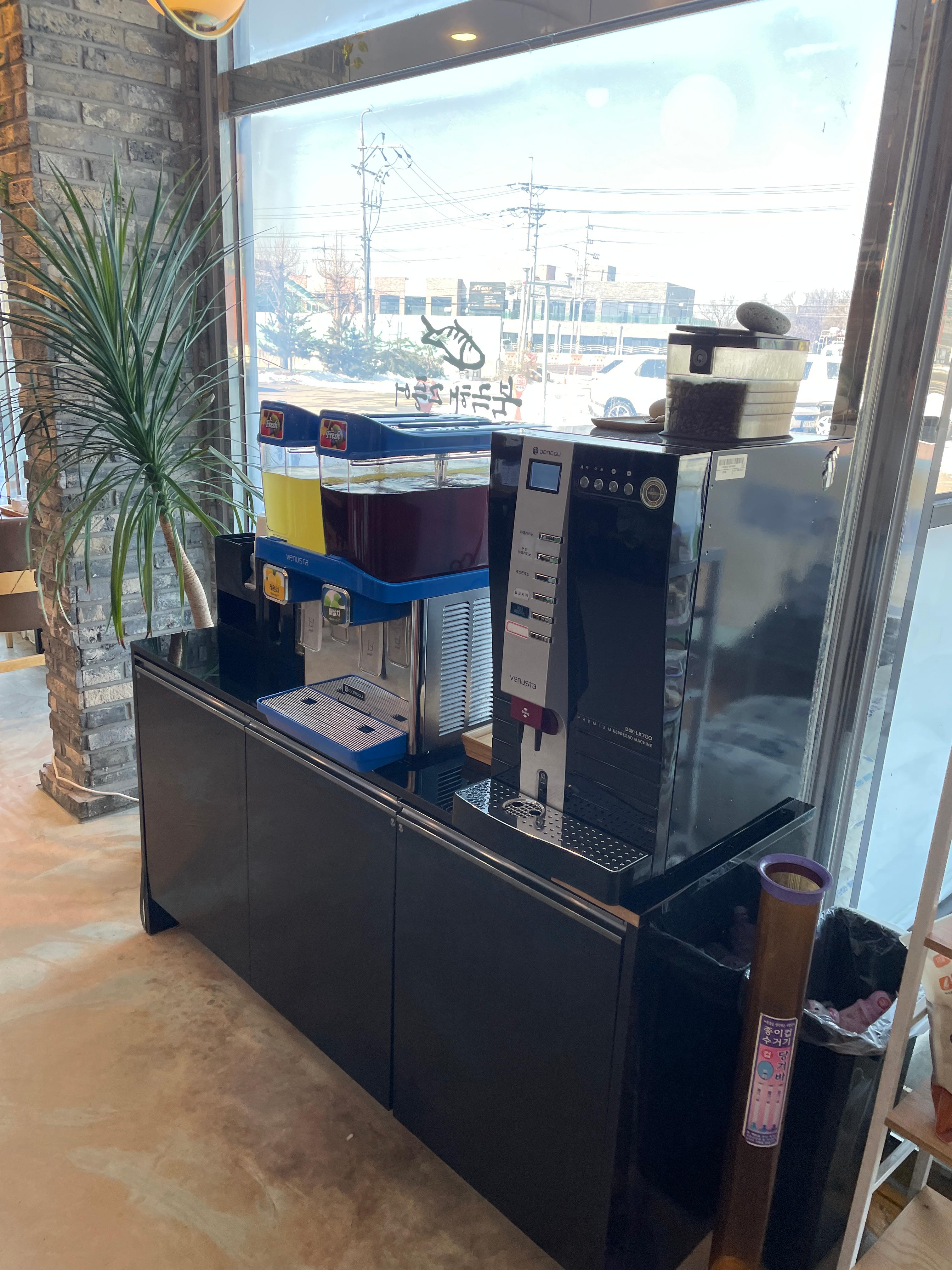 입구쪽에는 식후 음료가 이렇게 준비되어 있다. 레몬음료?랑 매실차. 그리고 커피.
