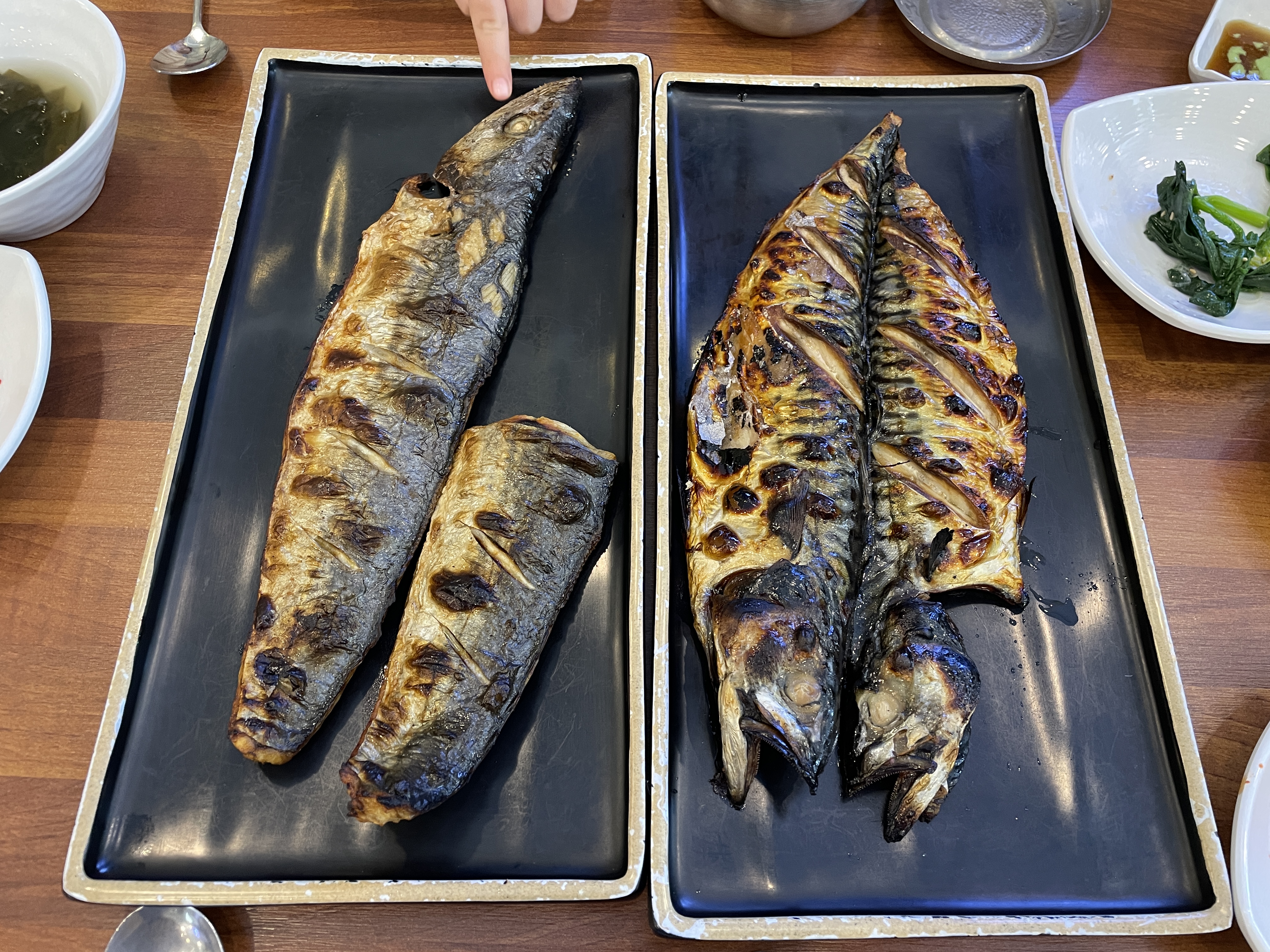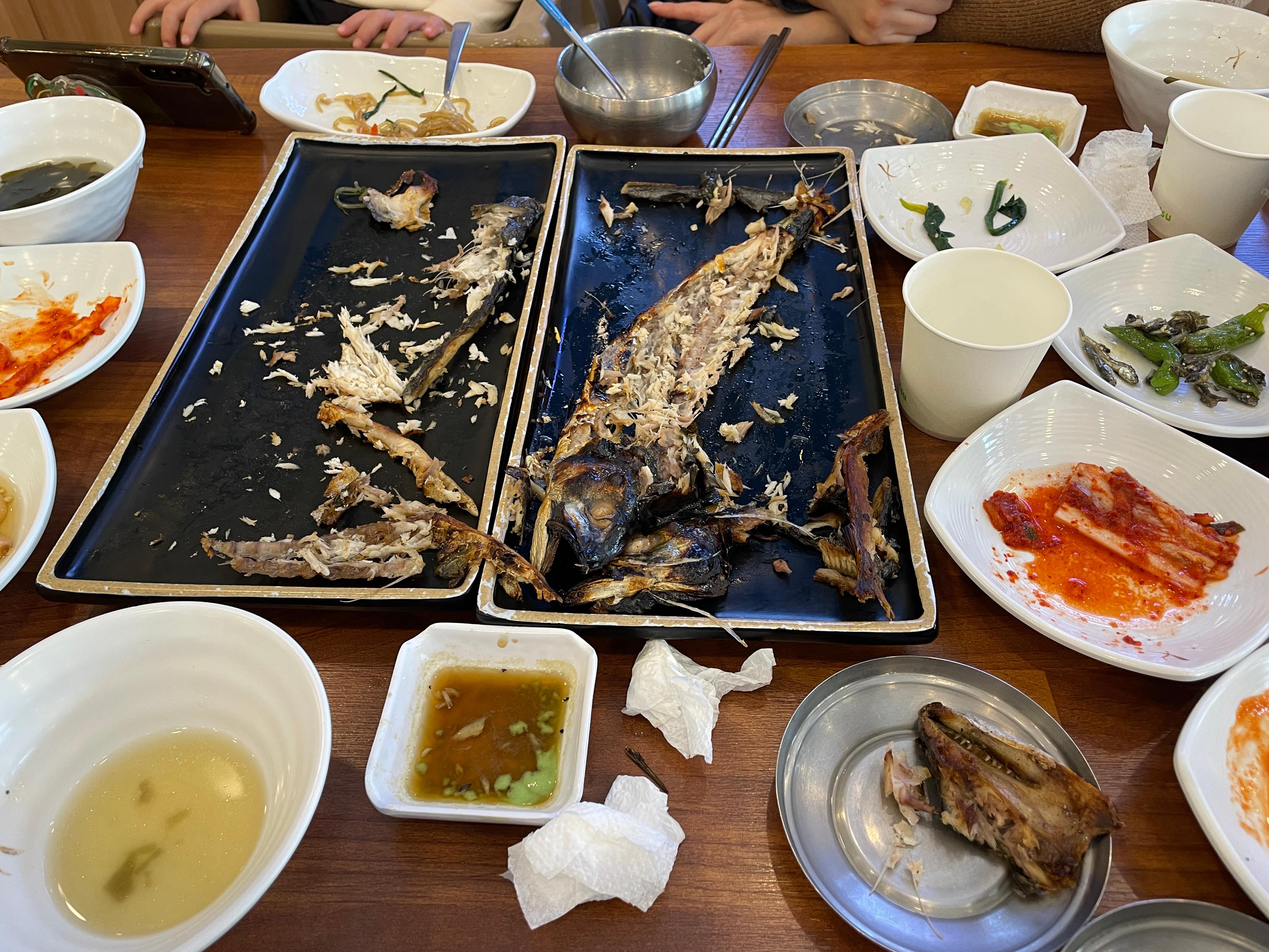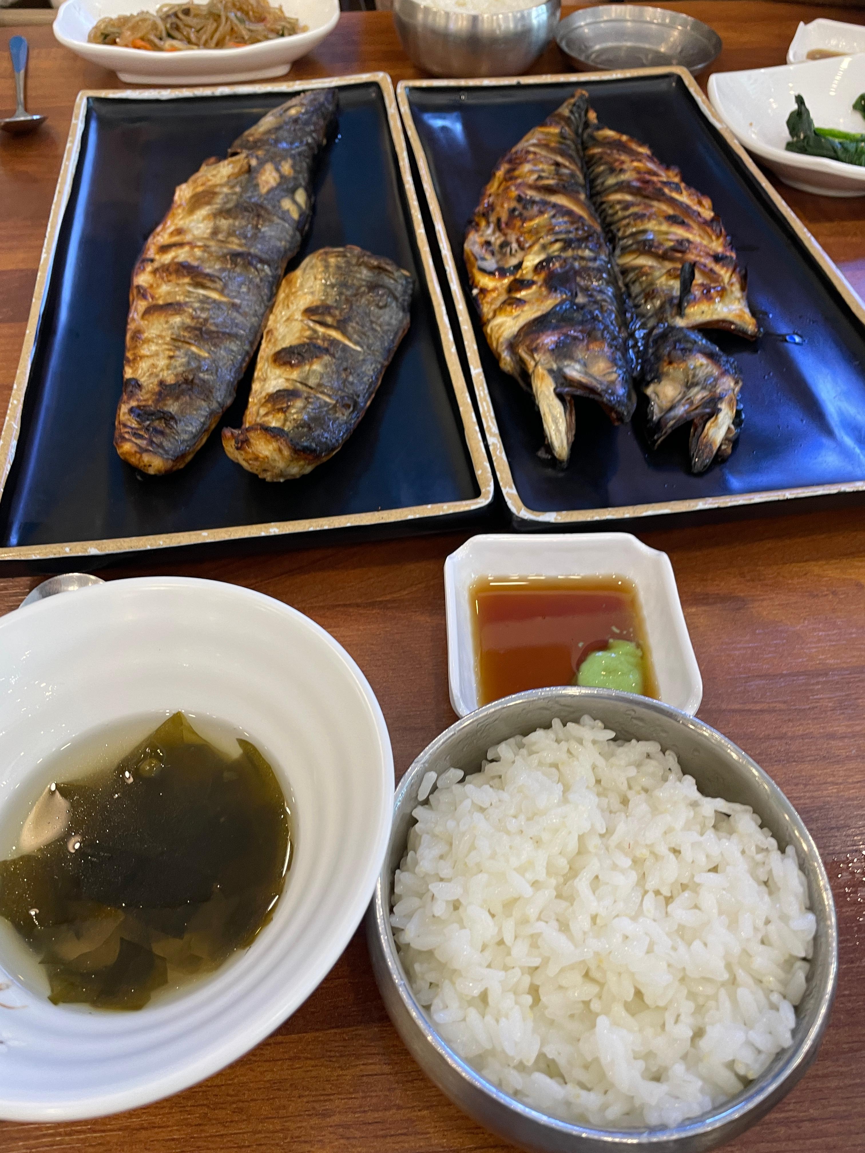 메인디쉬 생선구이가 나왔다. 이전에 용인 어딘가에 맛있는 생선구이집에 방문했었는데.. 거기는 화덕이 쏘 스몰이라 그런지 생선이 한참 걸려 나왔는데 여기는 좀 빨랐다. 체인점이라 그런가.. 시스템이 잘 되어 있는 듯. 빨리 나와 좋았다.